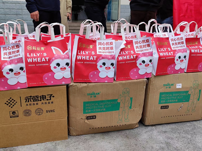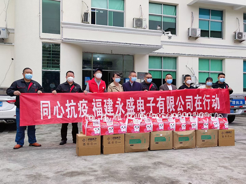 為了回饋這份守護,在大后方,永盛電子為疫情防控一線的工作人員捐贈抗疫物資,帶去守望相助的力量。